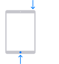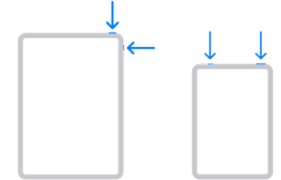 [ホームボタン非搭載モデルの iPad ]トップボタンといずれか片方の音量調節ボタンを同時に押して放す[ホームボタン搭載モデルの iPad ]トップボタンとホームボタンを同時に押して放す